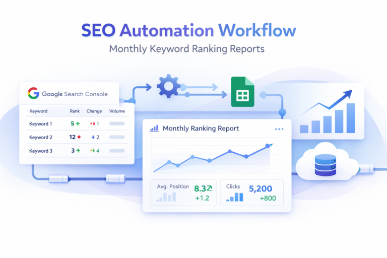 Read More →Automatically pulls keyword performance data from Google Search Console and publishes a clean, ranked report in Google Sheets every month.
