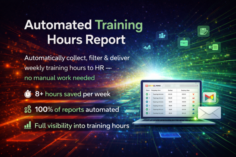 Read More →Automatically collect, filter and deliver weekly training hours to HR no manual work needed.