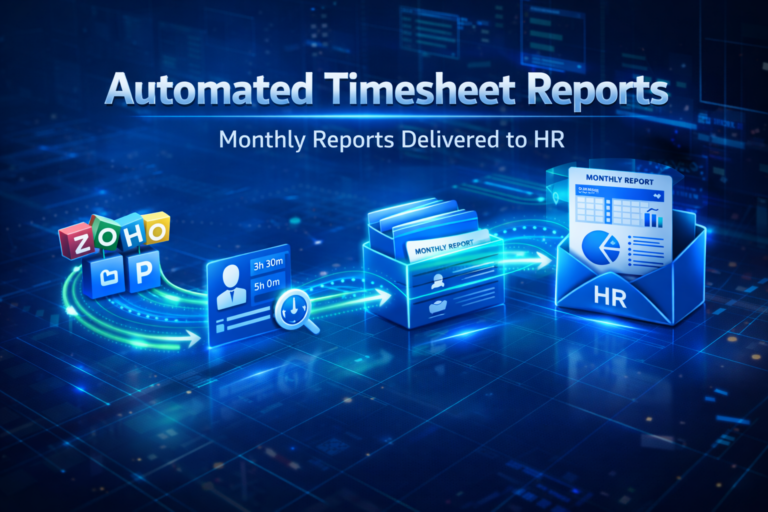 Read More →An end-to-end automation system that extracts employee time logs from Zoho Projects, consolidates them, and delivers structured monthly reports automatically...